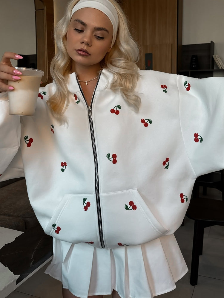 This street style hooded sweatshirt jacket is made of thick cotton fabric, featuring an adjustable hood and practical side pockets. The loose fit ensures comfort and versatility, perfect for casual outings, campus wear, or outdoor activities during the autumn season.