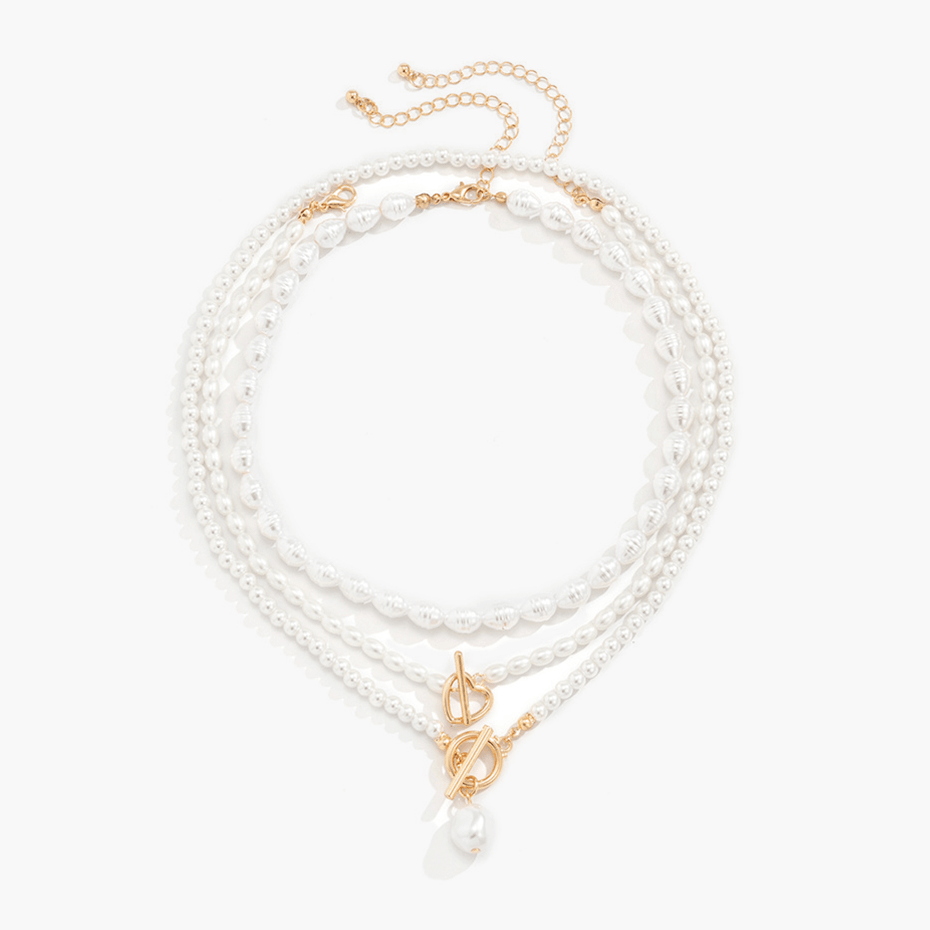 Composto por 3 colares de pérolas feitos à mão, esse conjunto pode ser usado para formar uma linda combinação de atrair olhares. Os colares também podem ser utilizados individualmente para looks mais descontraídos do dia-a-dia, além de você também poder combiná-los com outros colares.