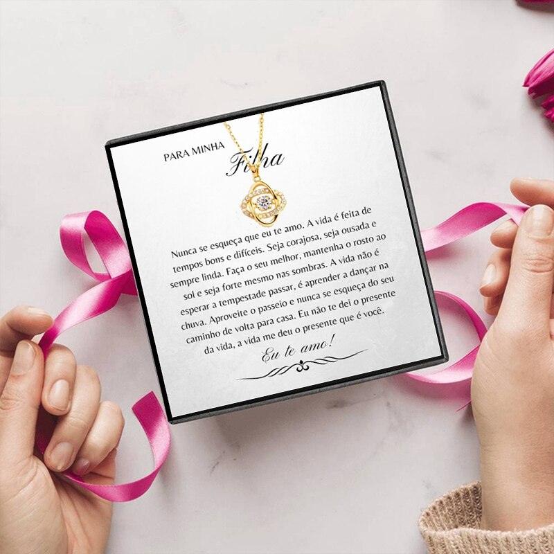 Este colar é ajustável, garantindo um encaixe perfeito no pescoço. Além disso, ele vem com um cartão de mensagem especial para sua filha. É um presente que ela poderá usar sempre, tanto no dia a dia, como em ocasiões especiais, ele é simplesmente perfeito e combina com tudo! É uma peça obrigatória para fechar o look com estilo e com um grande significado emocional.