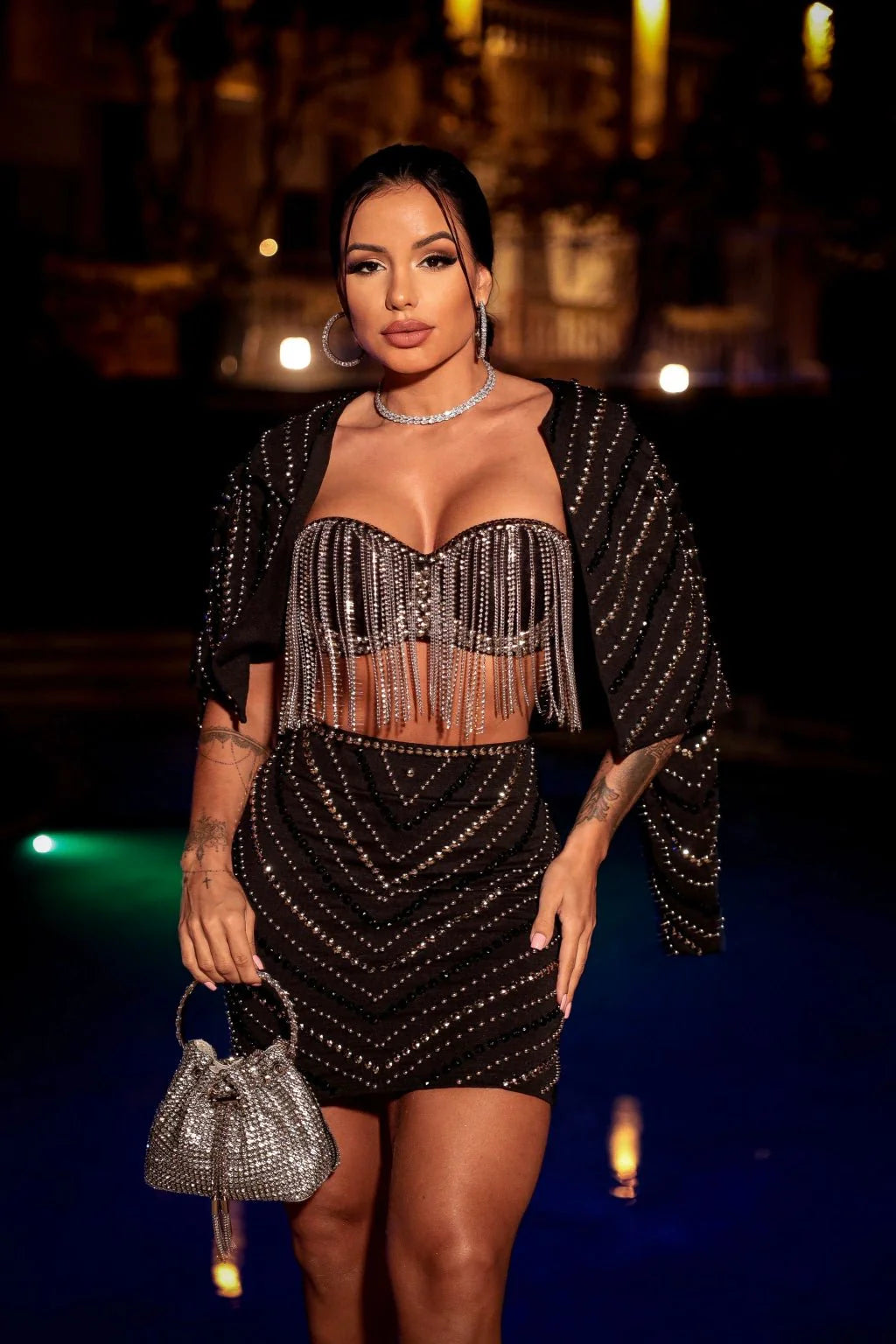 Material: Jacard 3D/ Peças com aplicações manuais/ Bojo/ Pedrarias/ Strass