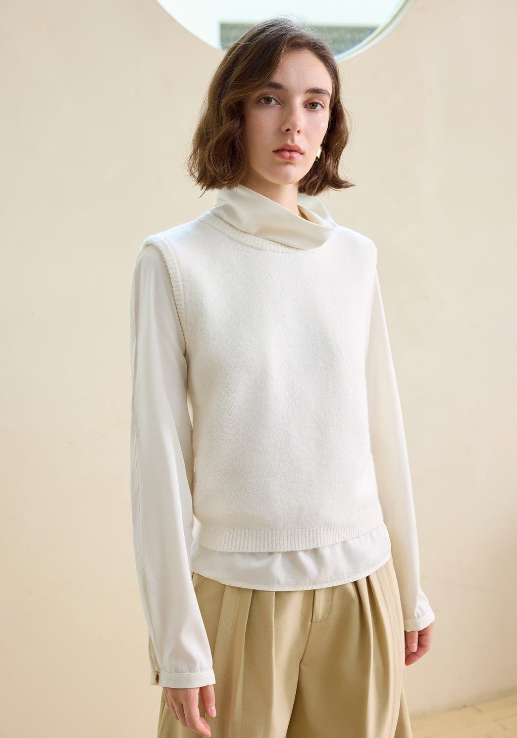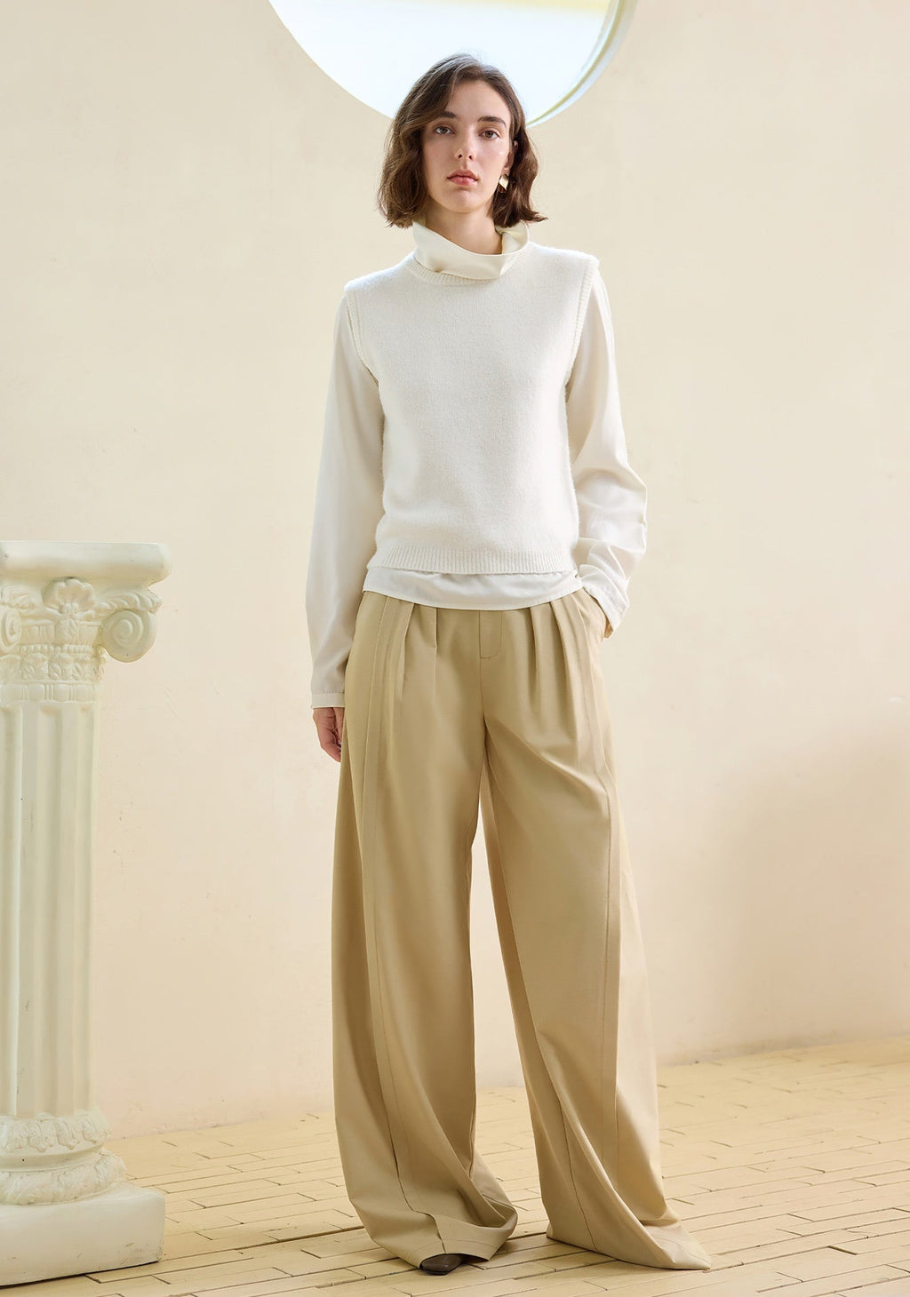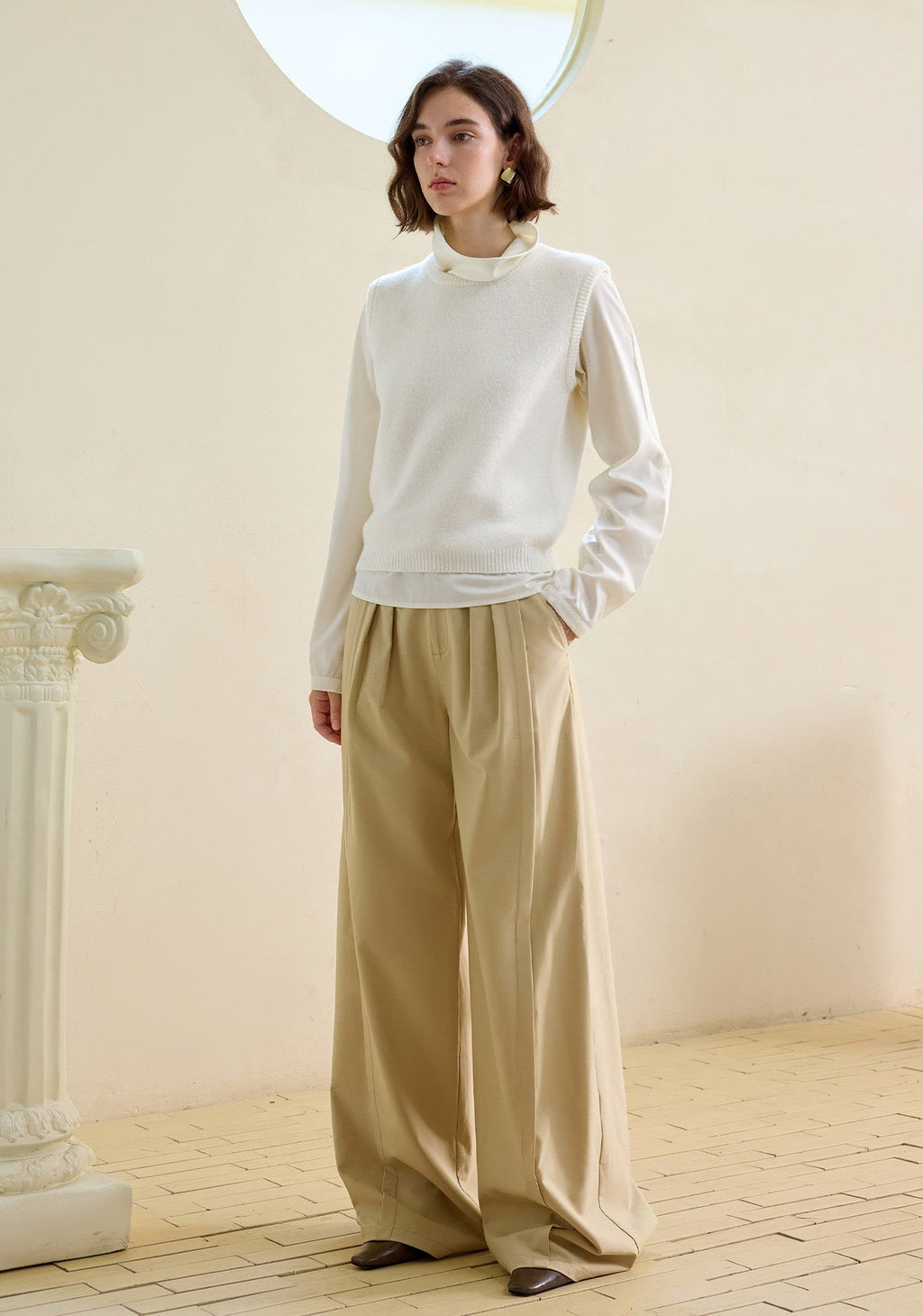Embrace autumn sophistication with this premium wool blend vest, featuring a relaxed vintage-inspired silhouette for effortless elegance. Its soft, high-quality fabric offers lightweight warmth and luxurious comfort, while the generous cut allows for easy layering over blouses, dresses, or simple knitwear.