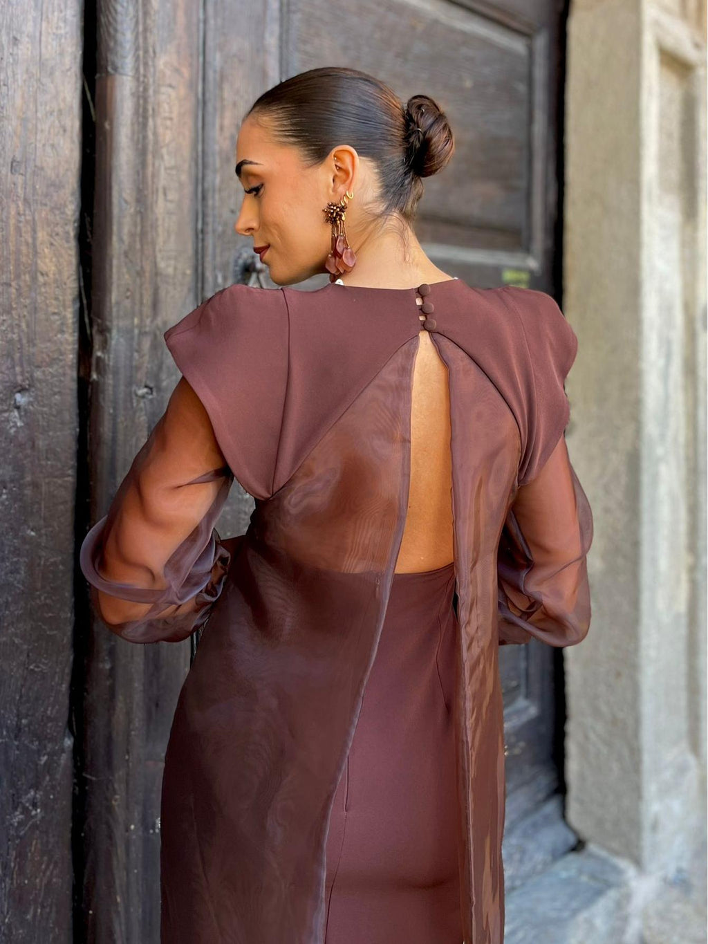 Indulge in the art of subtle seduction with the Chocolate Sheer Organza Tie Maxi Dress. Bathed in a rich cocoa hue, this dress balances modern sensuality with timeless sophistication. The sleek, body-contouring silhouette is elevated by sheer organza accents that bring movement, texture, and a whisper of romance to every step.