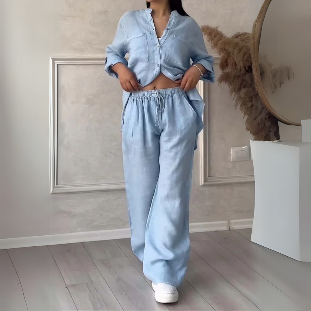 O Conjunto Andreia é a escolha perfeita para quem deseja unir conforto e elegância em um look versátil. Com uma pegada moderna e despojada, ele é composto por uma camisa leve e uma calça pantalona ajustável, proporcionando liberdade de movimento e um caimento impecável. Feito com tecido de alta qualidade, é ideal para momentos casuais, viagens e até para compor produções mais sofisticadas.