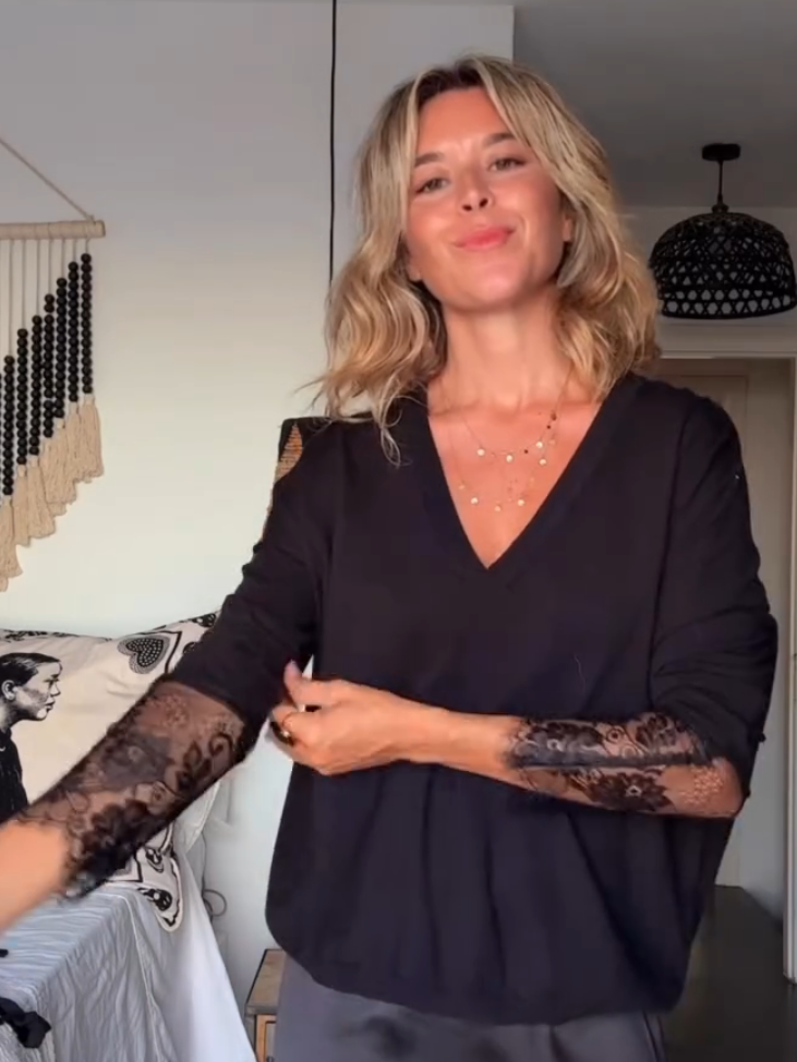 • V-neck top with lace-trimmed sleeves for a romantic touch