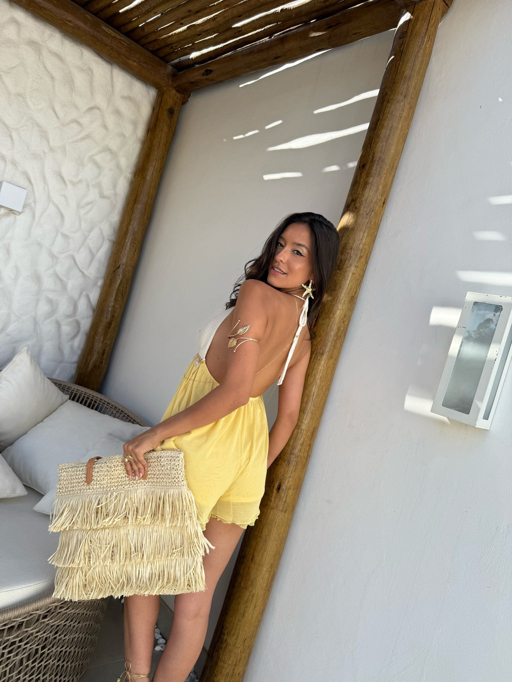 - Tecido: Tule poliamida/ Crochê/ Aviamentos naturais