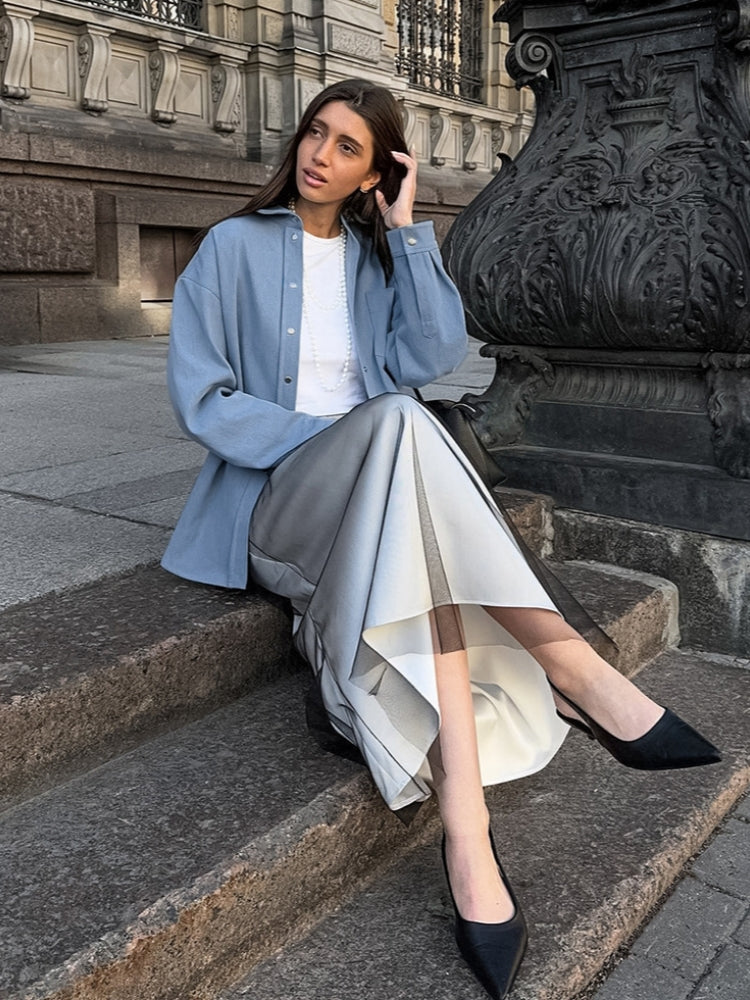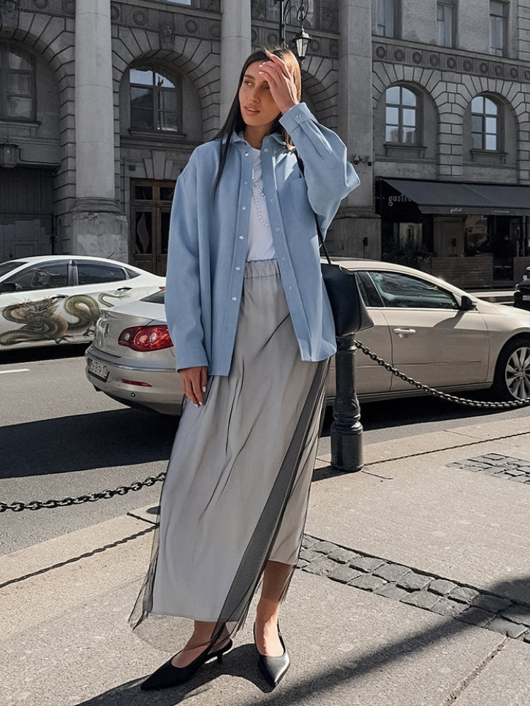 This classic shirt features a refined notch collar and long sleeves with traditional shirt cuff detailing. The single-breasted button placket offers a clean, streamlined look, while the tailored fit ensures a polished silhouette. Crafted from premium cotton poplin, it maintains crisp structure while providing all-day comfort.