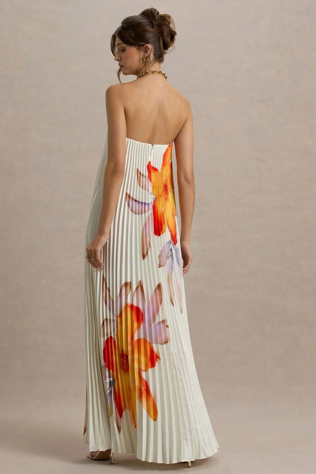 O Vestido Lumara traduz o luxo e a feminilidade com perfeição. Com um plissado dourado cintilante e decote estruturado em V, esse modelo sem alças oferece uma silhueta fluida e imponente. Ideal para mulheres que desejam marcar presença com elegância, seja em jantares, casamentos ou eventos de gala.